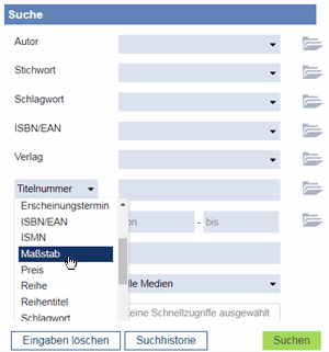 Nutzen Sie die diese Felder, um sich zwei Eingabefelder mit in Ihrer Buchhandlung häufig verwendeten Suchkategorien einzustellen.