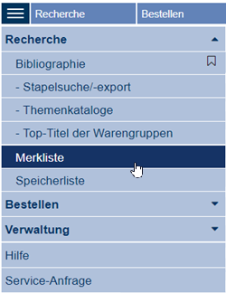 MerklisteTitel in der Merkliste speichernWenn Sie aus mehreren Suchaktionen jeweils einen oder mehrere Titel zwischenspeichern möchten, können Sie diese in der Merkliste sammeln, indem Sie unter Weitere Funktionen den Befehl Titel in Merkliste benutzen.