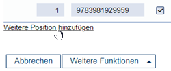 In die Bestellzeilen des Tabellenteils geben Sie die Menge und entweder die ISBN, die EAN oder die Titelnummer ein. Hierbei können Sie auch mit einem Bindestrich als Platzhalter für den Verlagsteil der ISBN sowie auch für das Bestellzeichen arbeiten. Beim Verlassen des Eingabefelds werden ISBNs automatisch geprüft. Bei einer fehlerhaften ISBN erhalten Sie eine Fehlermeldung. Sie können nun die ISBN korrigieren oder das Häkchen bei Nr-Pr. entfernen und so den Titel ohne Nummernprüfung bestellen. Das Ausschalten der Nummernprüfung ermöglicht es, ISBNs mit falscher Prüfziffer zu bestellen. Erscheint ein Titel als Koproduktion bei mehreren Verlagen, können Sie mit deaktivierter Nummernprüfung über die ISBN den Titel bei dem Verlag Ihrer Wahl bestellen. Sind für einen Titel verschiedenen ISBNs für verschiedene Auflagen hinterlegt, können Sie so auch eine ältere Auflage bestellen. Mit aktivierter Nummernprüfung wird eine Bestellungen immer mit der Nummer übermittelt, die bei den bibliografischen Details dieses Titels zuoberst steht. Die Bestellmaske umfasst zehn Zeilen. Wollen Sie mehr Positionen erfassen, so können Sie mit Klick auf Weitere Position hinzufügen eine zusätzliche Zeile erzeugen.