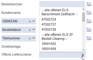 Wenn Sie die Selektbox mit den offenen elektronischen Lieferscheinen öffnen, stehen oben die Lieferscheine vom Zeitfracht Barsortiment.